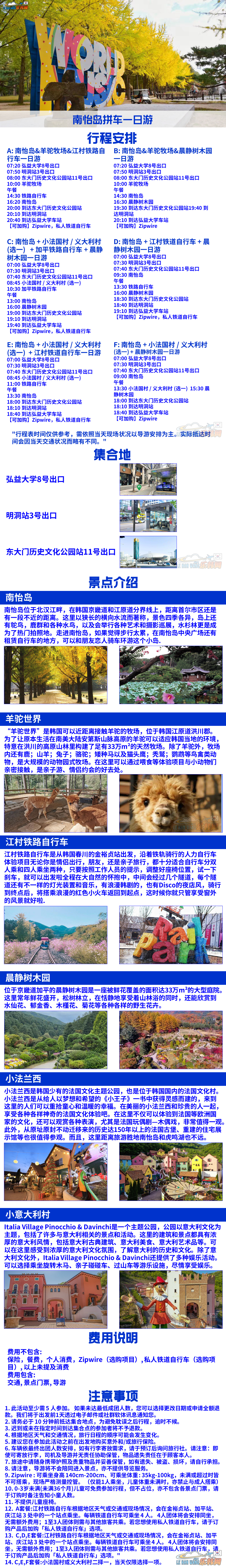 韩国南怡岛羊驼牧场江村铁路晨静树木园小法兰西拼车一日游