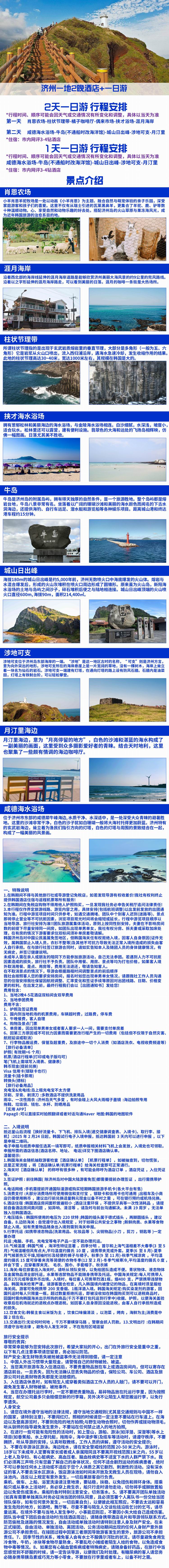 韩国济州岛旅游半自助跟团1-2天/牛岛/城山日出峰/涯月邑/月汀里