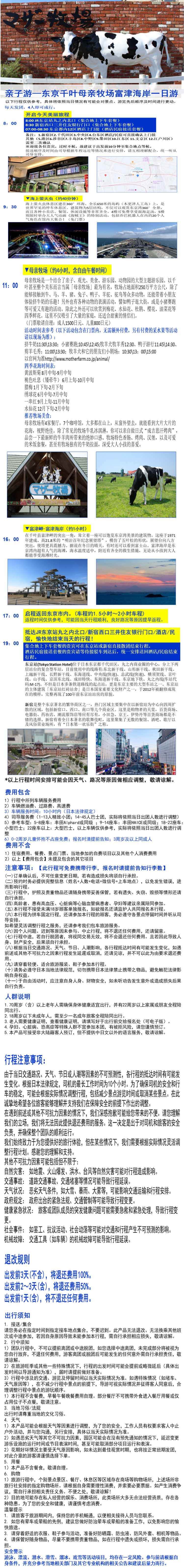 亲子游 东京千叶母亲牧场 富津海岸 一日游