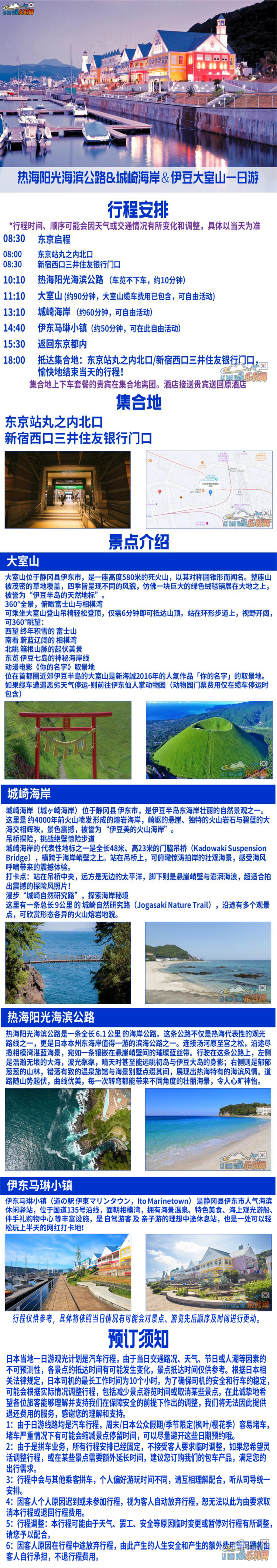 热海阳光海滨公路+城崎海岸+伊豆大室山 一日游