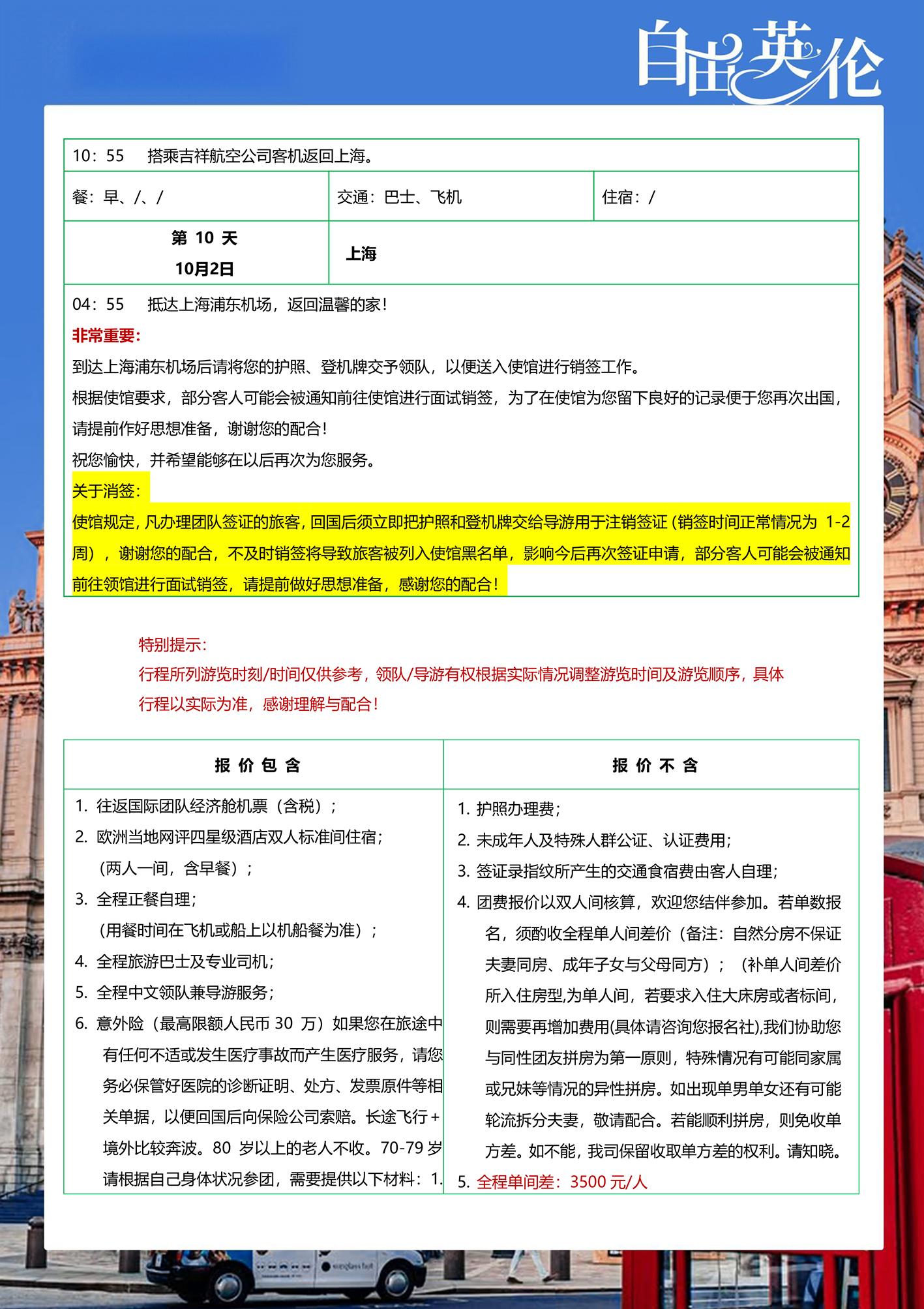 自由英伦一地10天